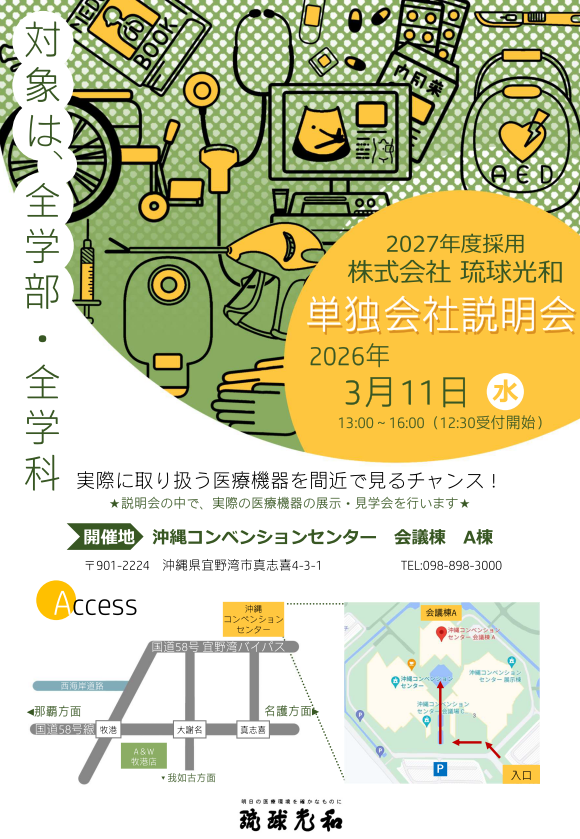 医療業界の仕事内容はもちろん、琉球光和の雰囲気ややりがい、魅力も発見することができます。